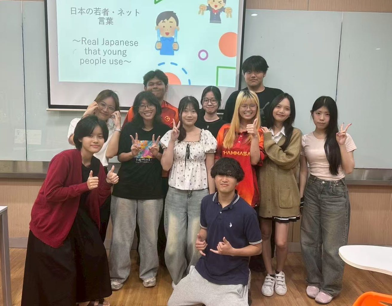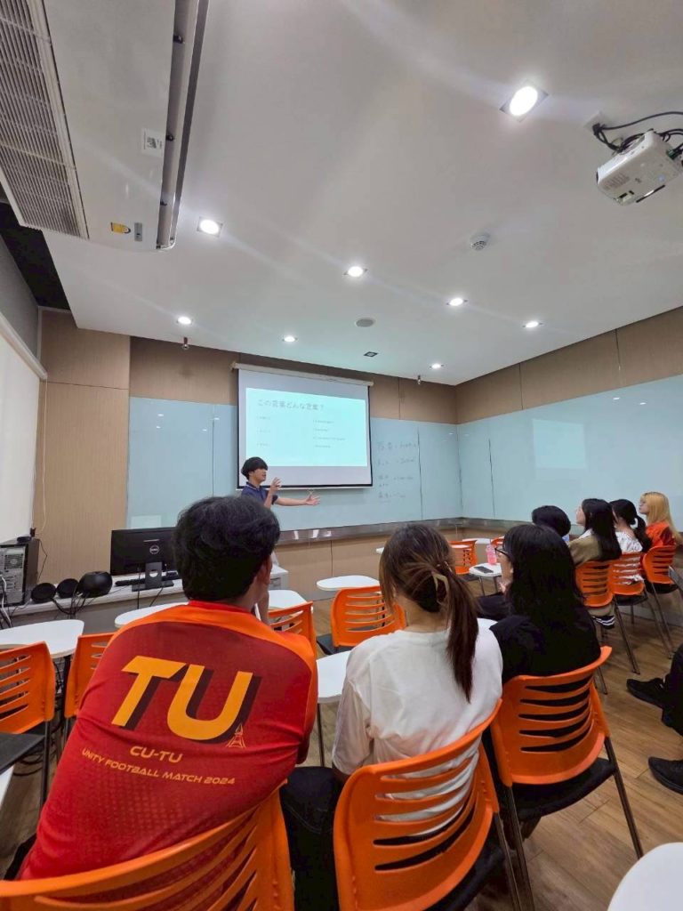 こんにちは!JC海外インターンシッププログラム2026に参加した成田麗斗です。僕は2026年2月23日にタマサート大学で1年生の日本語学習者を対象に授業を行ってきました!テーマは「日本の若者・ネット言葉」とし、日本人の若者が日常的に用いる汎用性の高いフレーズを中心に学習活動を実施しました!